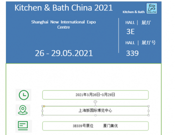 第26屆中國國際廚房、衛(wèi)浴設施展覽會將于2021年5月在上海拉開大幕。廈門集優(yōu)新材料有限公司誠邀閣下參觀:上海新國際博覽中心, 3E339號展位。